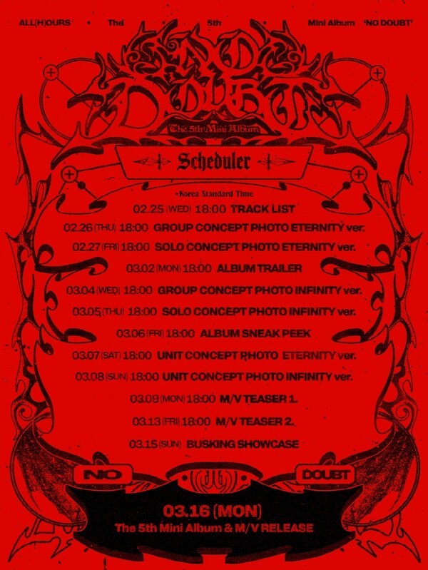 이와 함께 올아워즈는 공식 SNS를 통해 스케줄러를 공개했다. 공개된 스케줄러에 따르면 올아워즈는 오는 25일 트랙리스트 공개를 시작으로 컴백 예열에 돌입한다. 26일과 27일, 3월 4일과 5일, 3월 7일과 8일 세 차례에 걸쳐 콘셉트 사진을 공개하며 팬들을 설레게 할 예정이다.