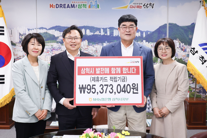 [스포츠서울ㅣ김기원기자]NH농협은행 삼척시지부(지부장 금석환)는 금고 약정에 따른 협력 사업비 및 제휴카드 적립에 따른 기금 95,373,040원을 24일 삼척시에 전달했다.