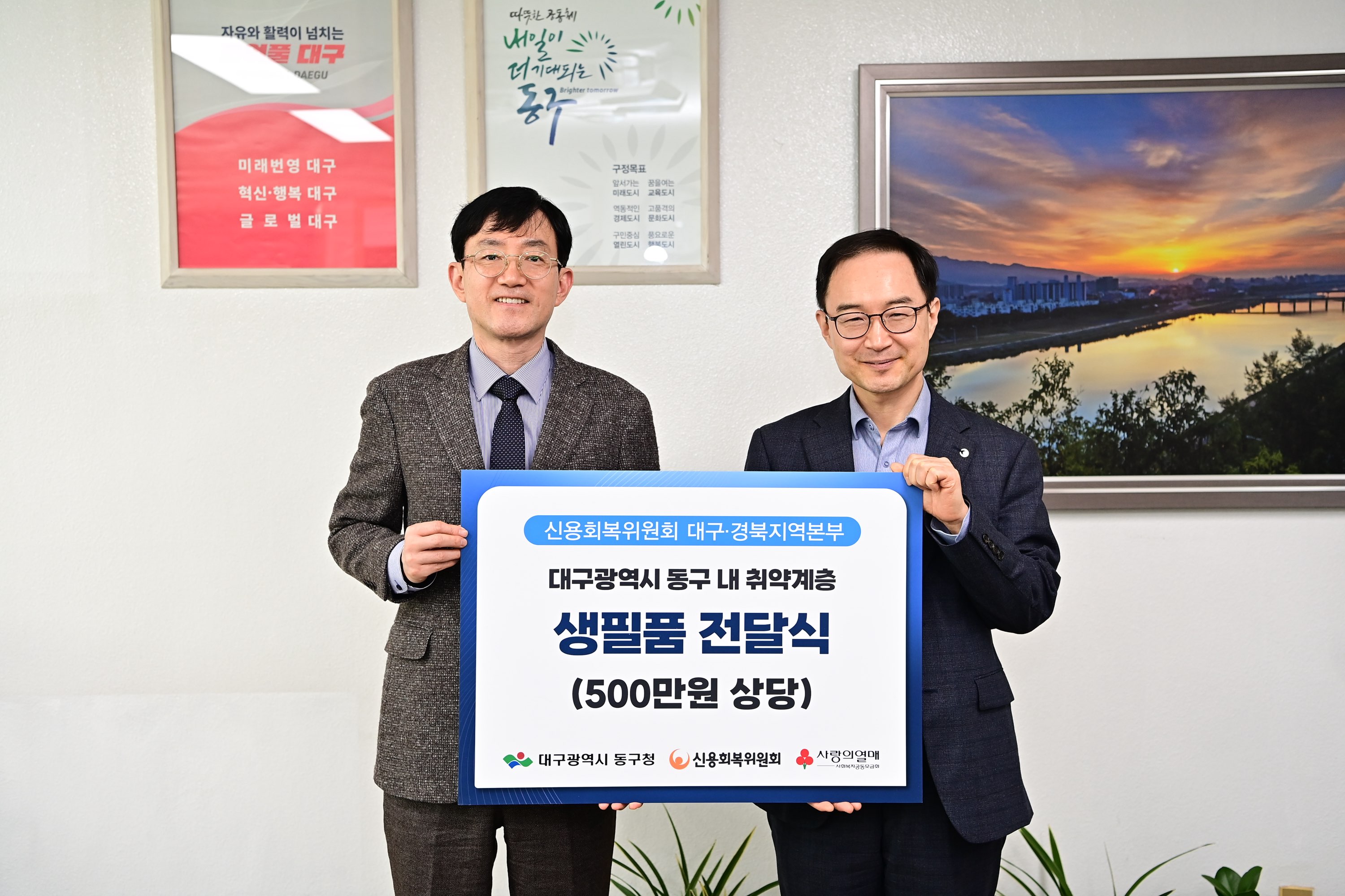 윤석준 동구청장은 "생필품 지원과 채무조정 상담까지 지원해 주신 신복위 대구경북본부에 감사드린다"고 전했다.