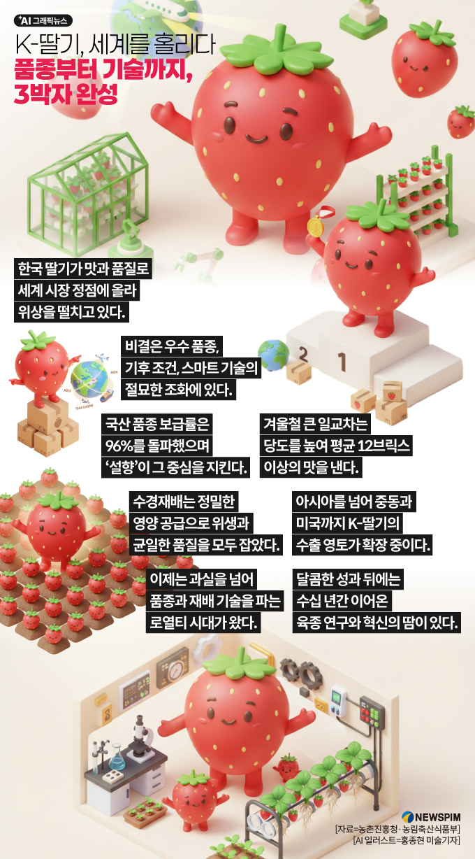 [AI그래픽뉴스] K-딸기, 세계를 홀리다 - 품종부터 기술까지, 3박자 완성