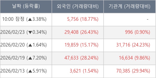 [표] 외국인ㆍ기관 순매매량 (단위 주)