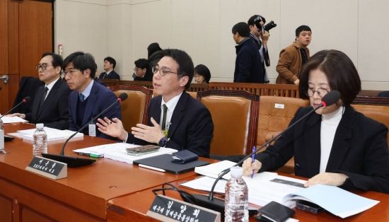 24일 서울 여의도 국회에서 열린 '한미 전략적 투자 관리를 위한 특별법안에 관한 공청회'에서 참석자들이 발언 하고 있다. 왼쪽부터 정인교 인하대 국제통상학과 교수, 허정 서강대 경제학과 교수, 서은종 BNP파리바 대표, 김양희 대구대 경제금융통상학과 교수.
