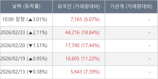 [표] 외국인ㆍ기관 순매매량 (단위 주)
