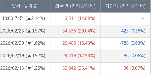 [표] 외국인ㆍ기관 순매매량 (단위 주)