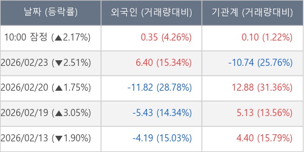 [표] 주요 기관별 순매매량 (단위 만주)