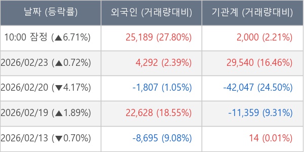 [표] 주요 기관별 순매매량 (단위 주)