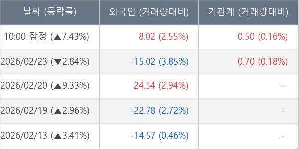[표] 주요 기관별 순매매량 (단위 만주)