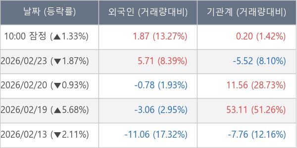 [표] 주요 기관별 순매매량 (단위 만주)