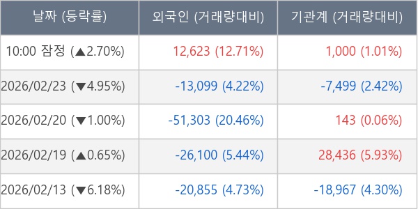 [표] 주요 기관별 순매매량 (단위 주)