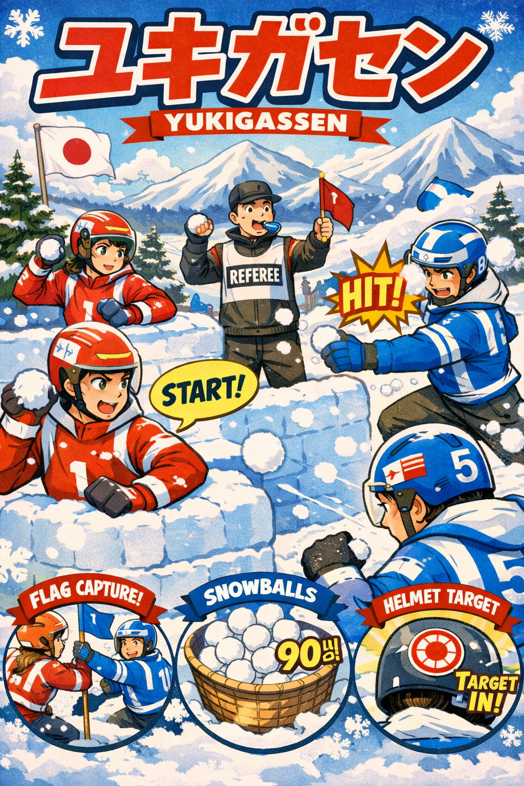 23일 일본 재팬타임스 및 프랑스 AFP통신 등에 따르면, 유키가센은 일본 홋카이도 소베쓰 마을에서 출발해 매년 대회를 이어오고 있다. 경기 방식은 선수들이 은폐물 뒤에 몸을 숨긴 채 상대 팀 7명을 눈덩이로 맞히거나 상대 진영의 깃발을 먼저 차지하면 승리하는 구조다.