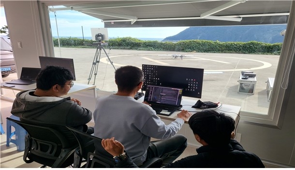해양드론기술 연구진이 개발 과제의 현장 적용을 위한 체계통합 작동시험을 하고 있다. |