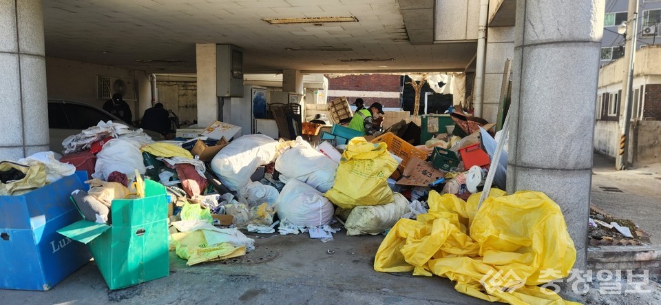 유천1동에서 진행된 저장강박 가구 방치 폐기물 청소 모습 |