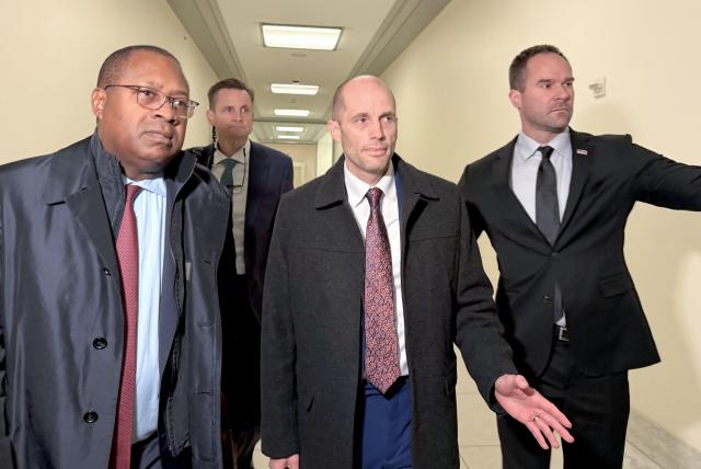 해롤드 로저스 쿠팡 한국법인 임시 대표(가운데)가 23일(현지시간) 미국 워싱턴DC의 연방 하원 법사위 회의장에 비공개 증언을 하기 위해 들어가고 있다.[사진=연합뉴스] |
