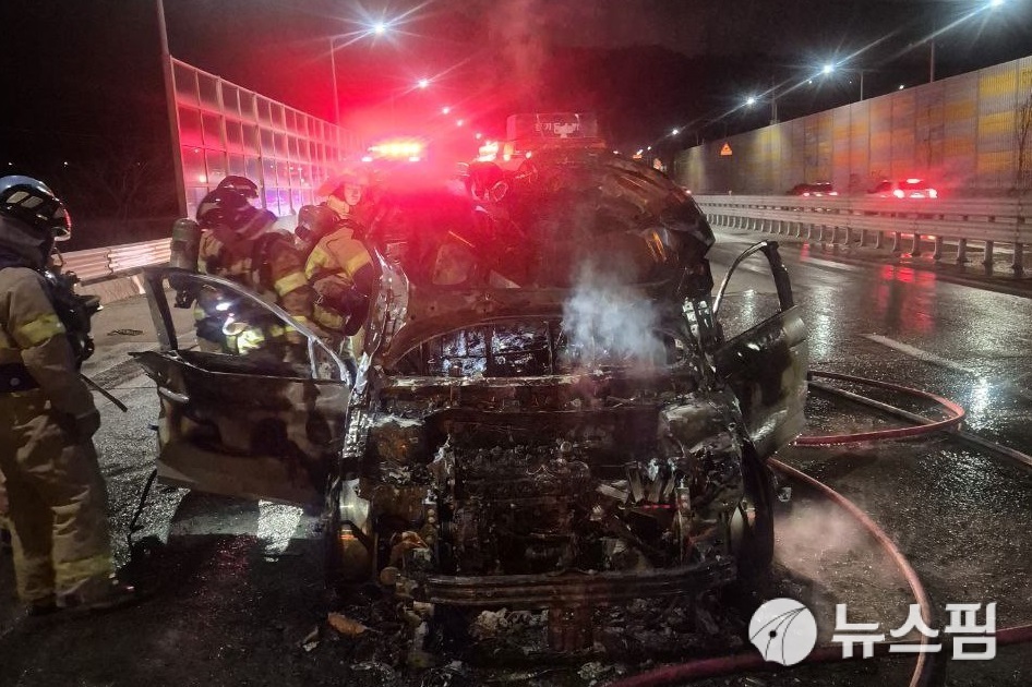 신고 10분 만인 오후 11시 28분께 소방 대원들이 현장에 도착했을 당시 승용차는 이미 거센 불길에 휩싸여 전소 중이었다.