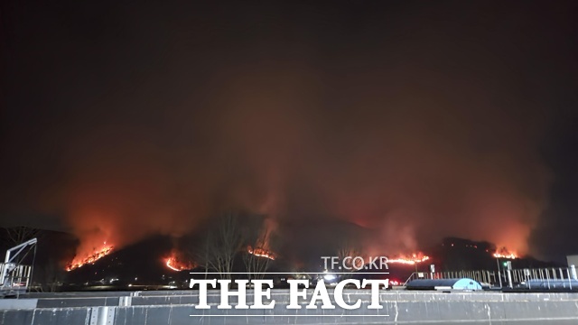 [더팩트ㅣ밀양=이경구 기자] 경남 밀양시 삼랑진읍에서 23일 오후 발생한 산불이 24일 오전 9시 30분 기준 진화율 85%를 보이고 있는 가운데 소방당국과 산림당국이 진화 작업에 총력을 기울이고 있다.