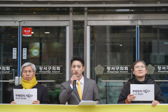 이 위원장은 24일 오전 서울 강서구의회 앞에서 기자회견을 열고 "2024년 강서구의회의 연말 의정활동 및 민원관계자비 지출 항목에서 수 건의 부정 사용 의심 정황을 발견했다"며 "지방정치에 대한 국민적 신뢰도를 낮추는 구의회의 배임, 횡령 혐의를 폭로하고 규탄한다"고 밝혔다. 또 이 후보는 이 자리에서 강서구의원 출마를 선언했다.
