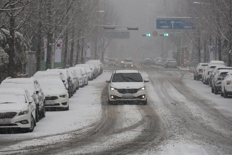 대설주의보 속 함박눈 내리는 대전. 연합뉴스 |