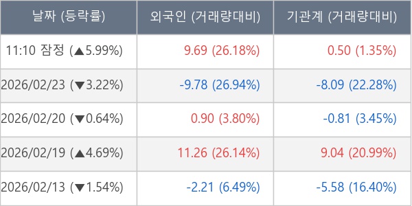 [표] 주요 기관별 순매매량 (단위 만주)