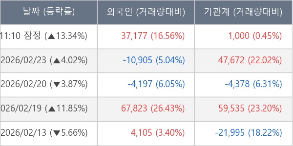 [장중수급포착] 한국피아이엠, 외국인/기관 동시 순매수… 주가 +13.34%