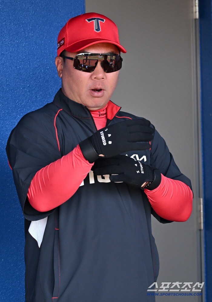 24일 일본 오키나와 가데나 구장에서 열린 야구 대표팀과 KIA 타이거즈의 평가전. 이범호 감독이 훈련을 지켜보고 있다. 오키나와(일본)=박재만 기자 pjm@sportschosun.com/2026.02.24/