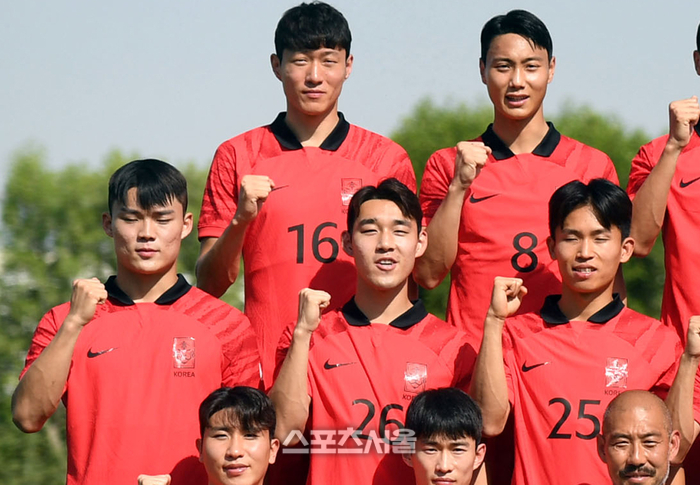 예비 선수 오현규(가운데 줄 맨 왼쪽)을 포함한 2022 FIFA 카타르 월드컵 대표팀이 단체 사진을 촬영하고 있다. 최승섭 기자 thunder@sportsseoul.com |