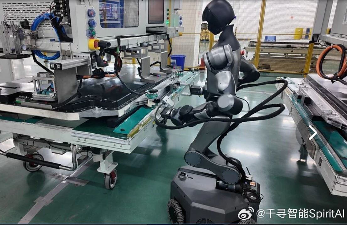 [사진 = 스피릿AI 공식 웨이보] 중국 스피릿AI(千尋智能∙첸쉰스마트∙Spirit AI)이 개발한 휴머노이드 로봇 '모즈1(小墨·샤오모·Moz1)'이 중국 닝더스다이(寧德時代∙CATL 300750.SZ/3750.HK)의 중저우(中州) 생산기지에서 작업을 하고 있다. |