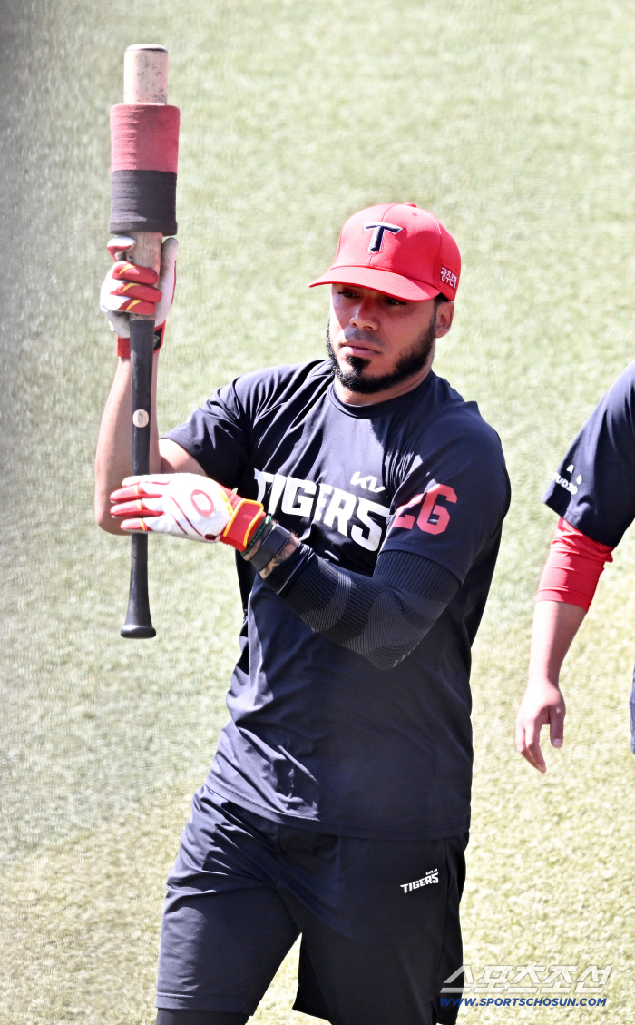 24일 일본 오키나와 가데나 구장에서 열린 야구 대표팀과 KIA 타이거즈의 평가전. 해럴드 카스트로가 훈련을 준비하고 있다. 오키나와(일본)=박재만 기자 pjm@sportschosun.com/2026.02.24/