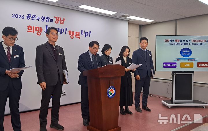 [창원=뉴시스] 홍정명 기자 = 경남도 김인수 경제통상국장이 24일 오전 도청 프레스센터에서 올해 추진하는 주요 민생경제 시책에 대해 브리핑하고 있다. 2026.02.24. hjm@newsis.com |