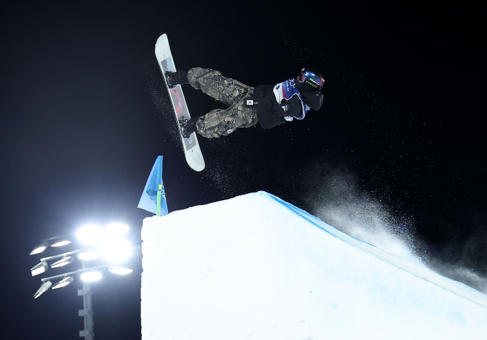 지난 9일(현지시간) 이탈리아 리비뇨 스노파크에서 열린 2026 밀라노·코르티나담페초 동계올림픽 스노보드 여자 빅에어 결선에서 유승은이 묘기를 펼치고 있다. 그는 이날 동메달을 차지했다. 연합뉴스 |