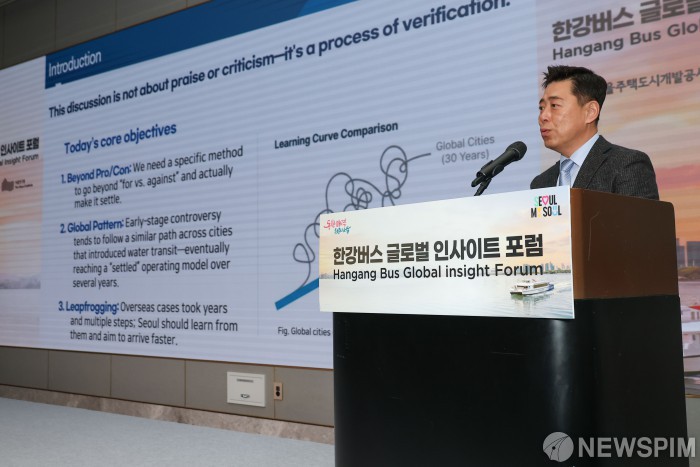 [서울=뉴스핌] 류기찬 기자 = 24일 오전 서울 마포구 호텔 나루 서울 엠갤러리 엠배서더에서 ‘한강버스 글로벌 인사이트 포럼’이 열리고 있다. 2026.02.24 ryuchan0925@newspim.com
