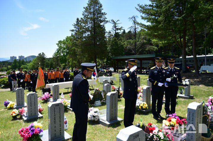 [서울=뉴시스] 순직 소방관 현충원 참배 모습. 사진=중앙119구조본부 제공) 2025.6.19 photo@newsis.com |