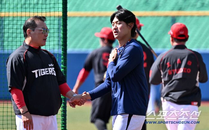 김도영도 미소로 답했다. 이어 손승락 코치와도 짧은 대화를 나눴다. 손 코치는 김도영에게 "다치지만 말고 돌아오라"는 농담 섞인 당부를 건넸고, 김도영은 밝은 표정으로 고개를 끄덕이며 화답했다.