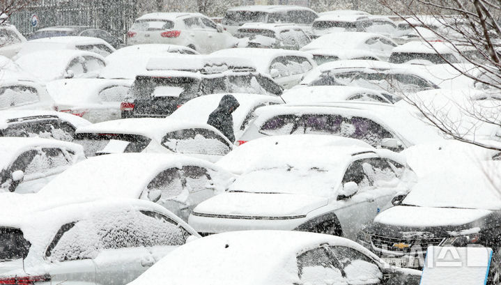 [세종=뉴시스] 강종민 기자 = 봄을 시샘하는 눈이 내린 24일 세종시 어진동 정부세종청사 주차장에 눈이 덮여 있다. 2026.02.24. ppkjm@newsis.com |