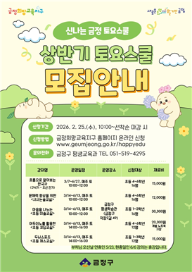 금정구 평생학습관에서 진행되는 이번 프로그램은 25일 오전 10시부터 금정희망교육지구 홈페이지에서 온라인 신청이 가능하다.