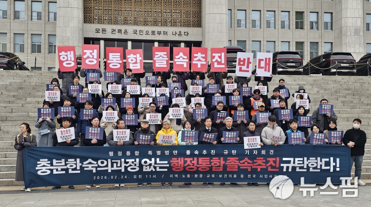 참여연대 등은 "주민 참여와 숙의는 실종된 채 행정통합 논의가 각종 특례와 권한 배분을 둘러싼 정치적 이해관계의 장으로 변질되고 있다"면서 "더욱이 행정통합 특별법안에는 각종 특례 규정이 포함돼 있어 주민 건강권, 환경권, 기본교육권 등 기본권 침해 논란이 제기됐다"고 주장했다.