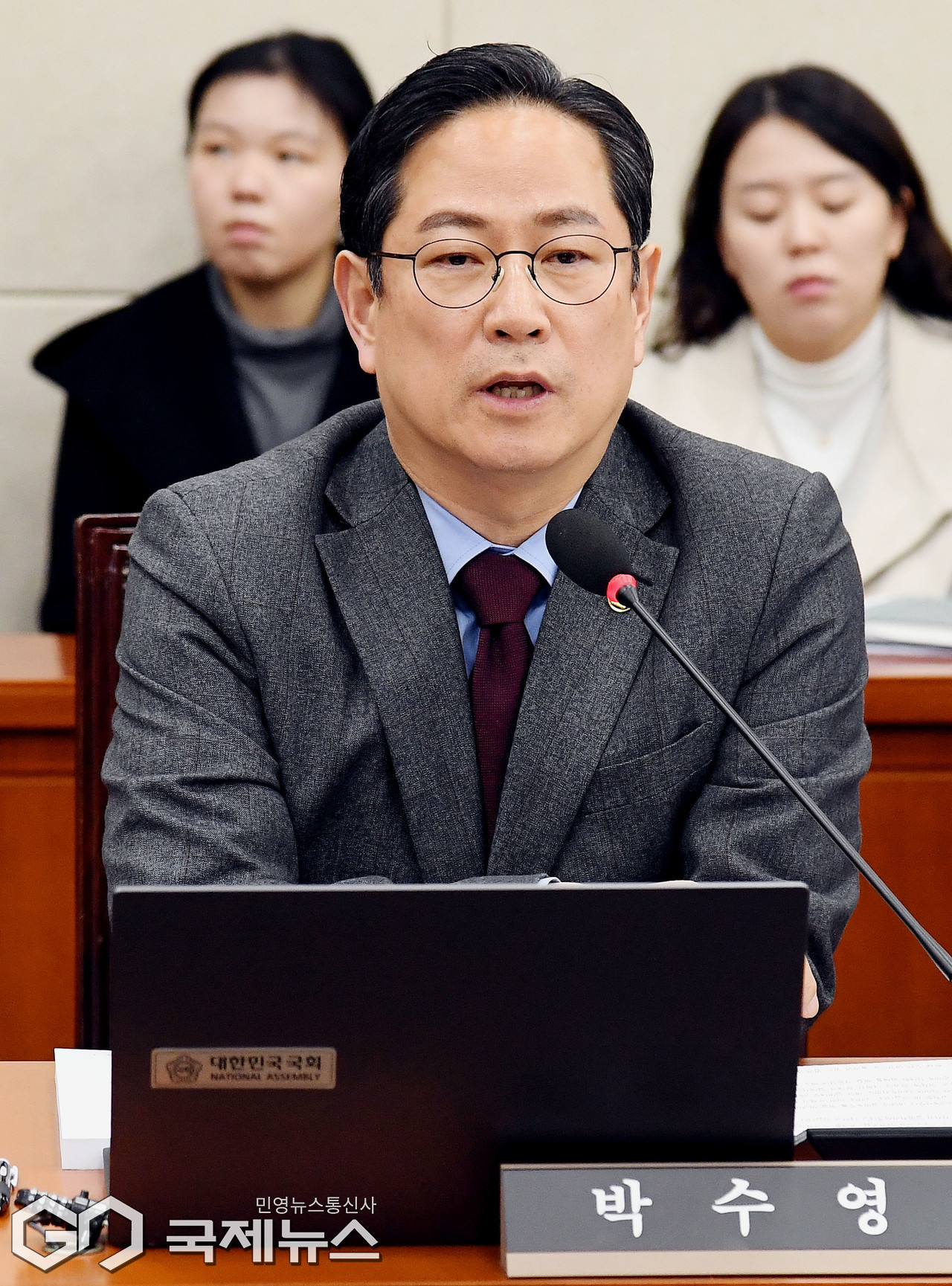 (서울=국제뉴스) 박수영 국회 대미투자특별법처리를위한특별위원회 국민의힘 간사가 24일 오전 서울 여의도 국회에서 열린 대미투자특별법처리를위한특별위원회 전체회의에서 의사진행 발언을 하고 있다./사진=이용우 기자