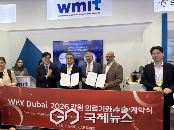 춘천시(시장 육동한)는 강원특별자치도, 원주시와 협력해 지난 9일부터 12일까지 아랍에미리트(UAE) 두바이 전시센터(DEC)에서 열린 'World Health Expo Dubai 2026(WHX Dubai)'에 강원공동관을 운영했다. 이번 전시회는 기존 '아랍헬스'가 개편돼 처음 열린 행사로 전 세계 180개국 4,800여 개 기업이 참가한 글로벌 헬스케어 산업 박람회다.