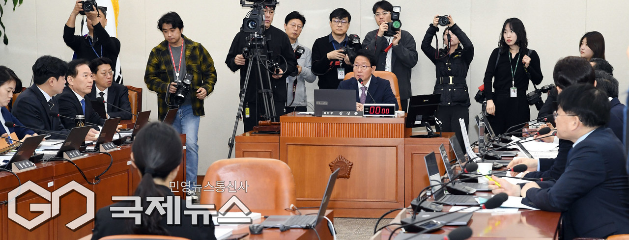 (서울=국제뉴스) 김상훈 국회 대미투자특별법처리를위한특별위원회 위원장이 24일 오전 서울 여의도 국회에서 열린 전체회의에서 의사봉을 두드리고 있다./사진=이용우 기자