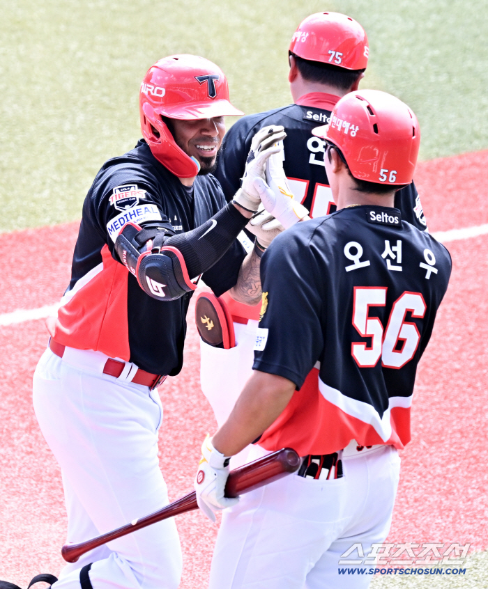 24일 일본 오키나와 가데나 구장에서 열린 야구 대표팀과 KIA 타이거즈의 평가전. 카스트로가 투런포를 날린 뒤 환호하고 있다. 오키나와(일본)=박재만 기자 pjm@sportschosun.com/2026.02.24/ |