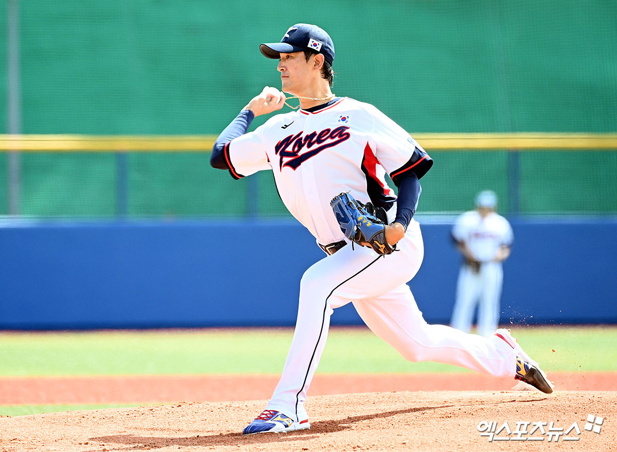 (엑스포츠뉴스 오키나와(일본), 고아라 기자) 24일 일본 오키나와 카데나 구장에서 열린 KIA 타이거즈와 WBC 대표팀의 연습경기, 대표팀 선발투수 고영표가 공을 힘차게 던지고 있다.