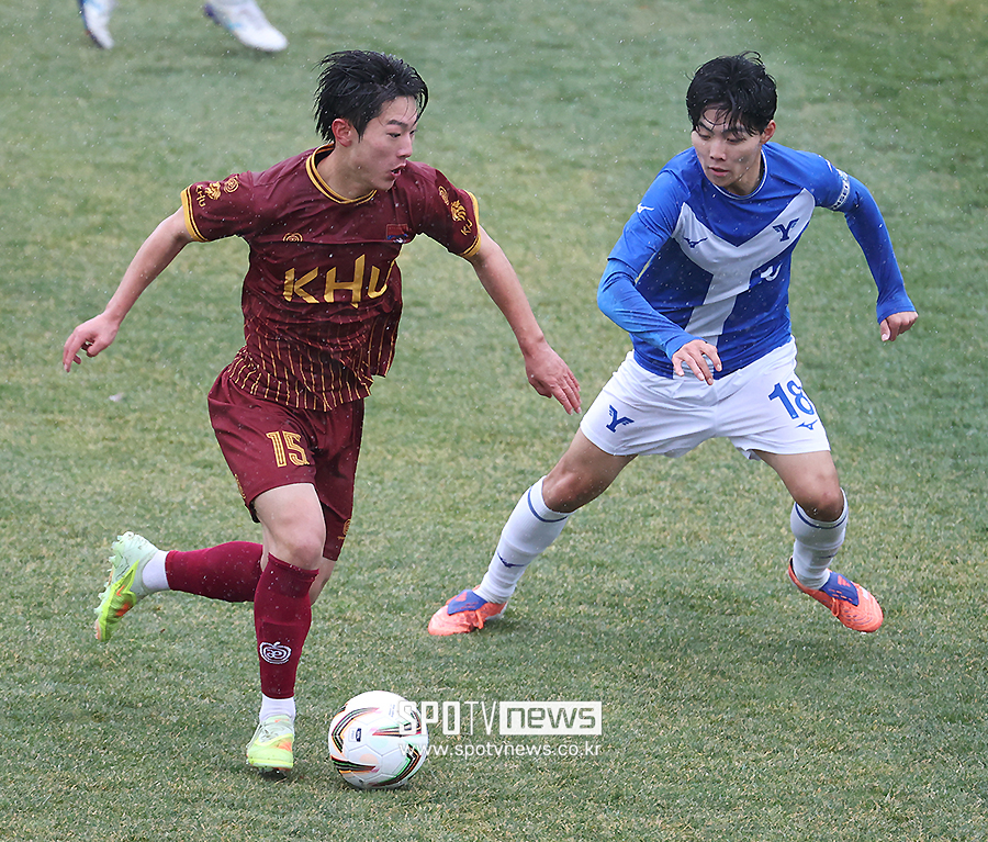 [스포티비뉴스=통영, 곽혜미 기자] '제62회 춘계대학축구연맹전' 한산대첩기 연세대와 경희대의 결승전이 24일 오후 경상남도 통영공설운동장에서 열렸다. 경희대 이영진이 드리블을 하고 있다.