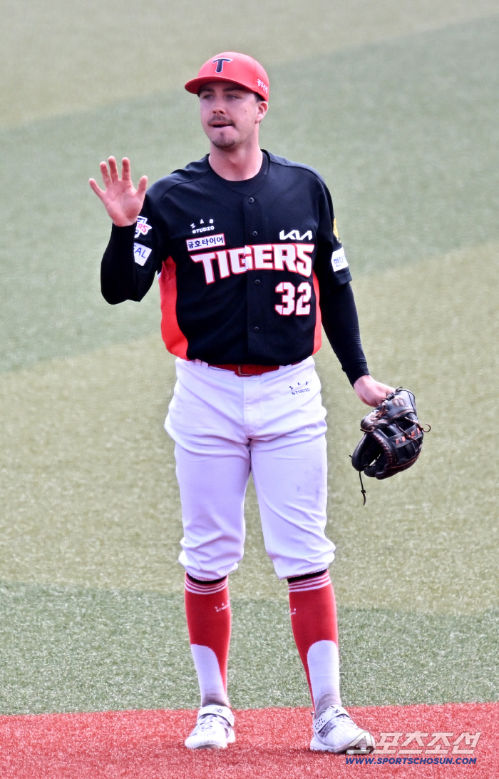 24일 일본 오키나와 가데나 구장에서 열린 야구 대표팀과 KIA 타이거즈의 평가전. 유격수 데일이 바람을 체크하고 있다. 오키나와(일본)=박재만 기자 pjm@sportschosun.com/2026.02.24/