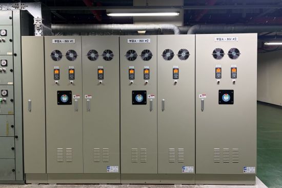 ‘탄소중립을 위한 복합형 에너지 절약’ 사업의 하나로 부산도시철도 역사 환기실 내 설치한 고효율 인버터. |