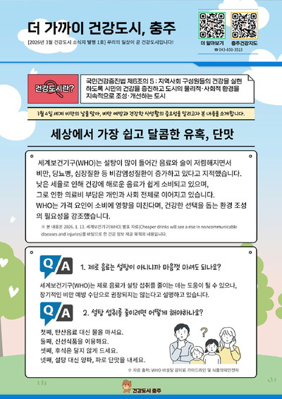 시 관계자는 "건강한 도시는 시민이 스스로 건강 정보를 이해하고 선택할 수 있을 때 지속 가능하다"며 "생활과 밀접한 주제를 중심으로 건강도시의 방향과 가치를 알기 쉽게 전달하겠다"고 말했다./충주=이현기자