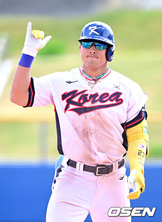 2회말 2사 1루 상황 대표팀 안현민이 안타를 날리고 1루에 안착해 기뻐하고 있다. 2026.02.24 / dreamer@osen.co.kr