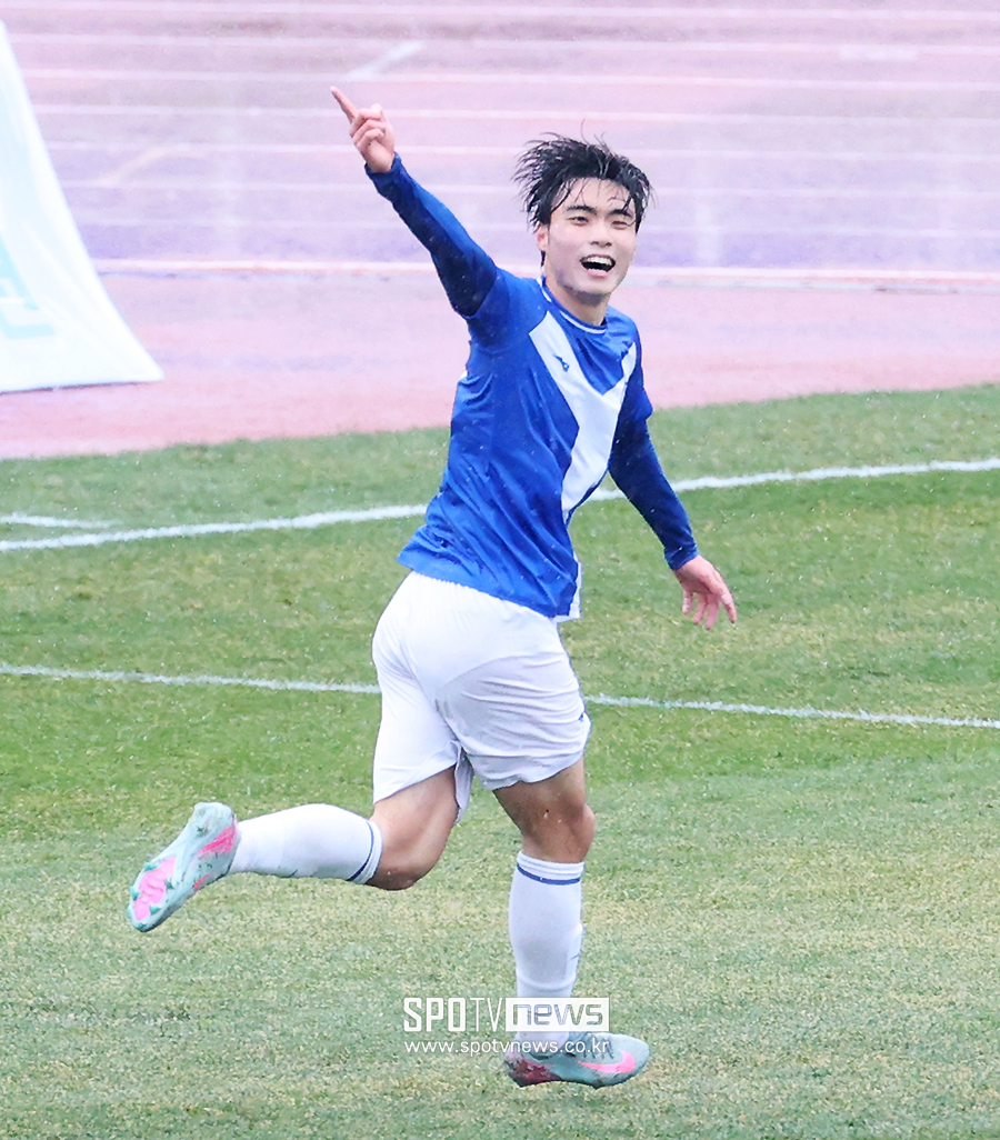 [스포티비뉴스=통영, 곽혜미 기자] '제62회 춘계대학축구연맹전' 한산대첩기 연세대와 경희대의 결승전이 24일 오후 경상남도 통영공설운동장에서 열렸다. 연세대 장현빈이 선취골을 넣고 세리머니를 하고 있다.