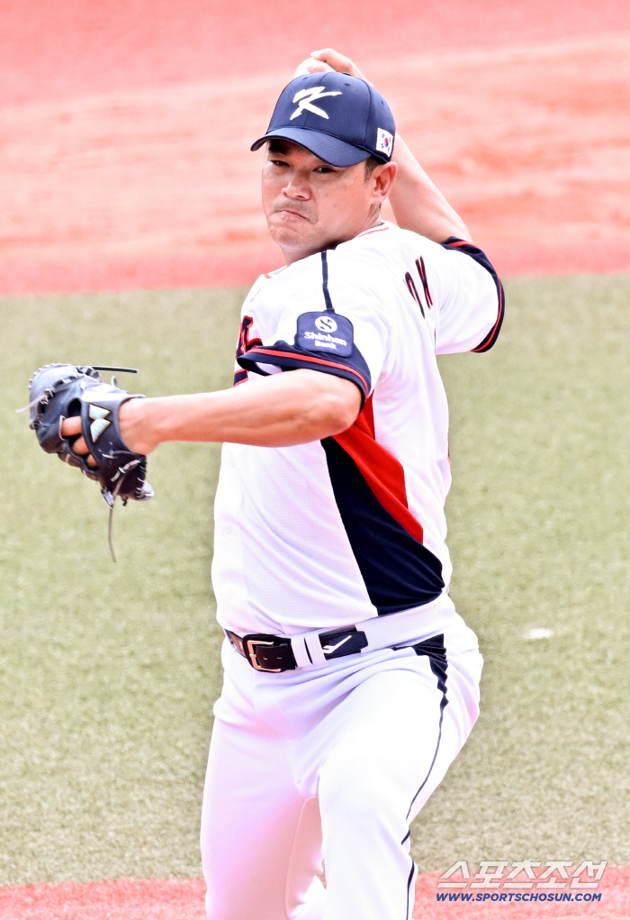 24일 일본 오키나와 가데나 구장에서 열린 야구 대표팀과 KIA 타이거즈의 평가전. 노경은이 역투하고 있다. 오키나와(일본)=박재만 기자 pjm@sportschosun.com/2026.02.24/