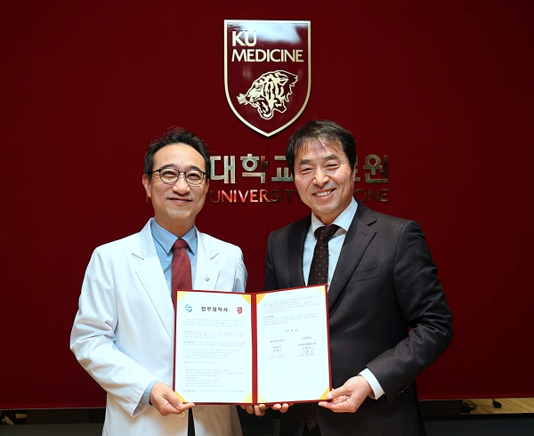사진 왼쪽부터 김학준 고대의료원산학협력단장, 윤학순 스페이스린텍 대표 |