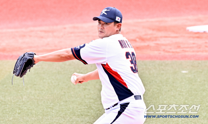 24일 일본 오키나와 가데나 구장에서 열린 야구 대표팀과 KIA 타이거즈의 평가전. 노경은이 역투하고 있다. 오키나와(일본)=박재만 기자 pjm@sportschosun.com/2026.02.24/