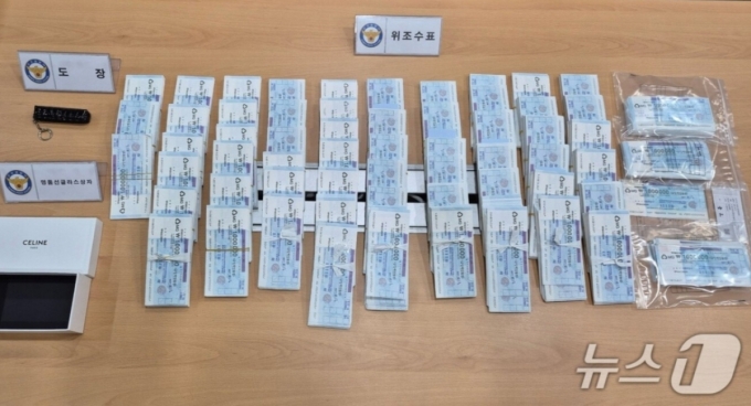 경찰이 압수한 위조수표 모습. /사진=뉴스1(군포경찰서 제공) |